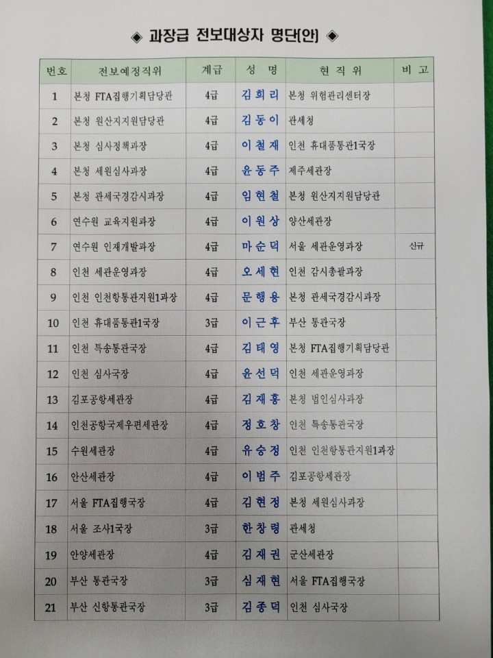 [인사][2.15(월)]과장급 전보인사 기준 및 명단